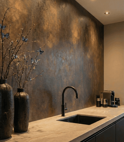 Geef je interieur karakter met metaallook panelen in gunmetal, brons of staal.