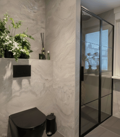 Deze panelen creëren direct een gevoel van elegantie en zijn ideaal voor badkamers, hallen of moderne woonkamers.