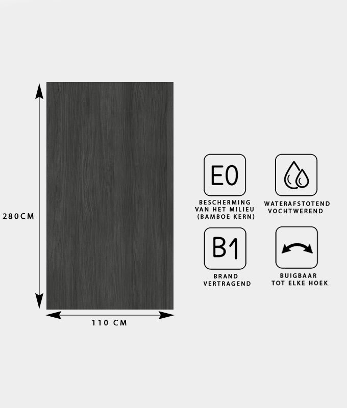 HOUT PANEEL: Eiken Dark Grey – 280 x 110 cm