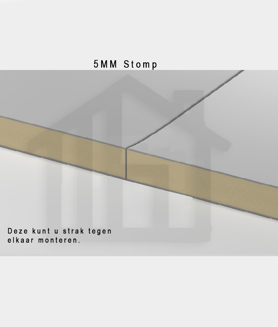 5mm panelen – Hebben een stompe afwerking, waardoor ze koud tegen elkaar gemonteerd kunnen worden. Dit kan eenvoudig met een kitrand of een profiel, afhankelijk van de gewenste look.
