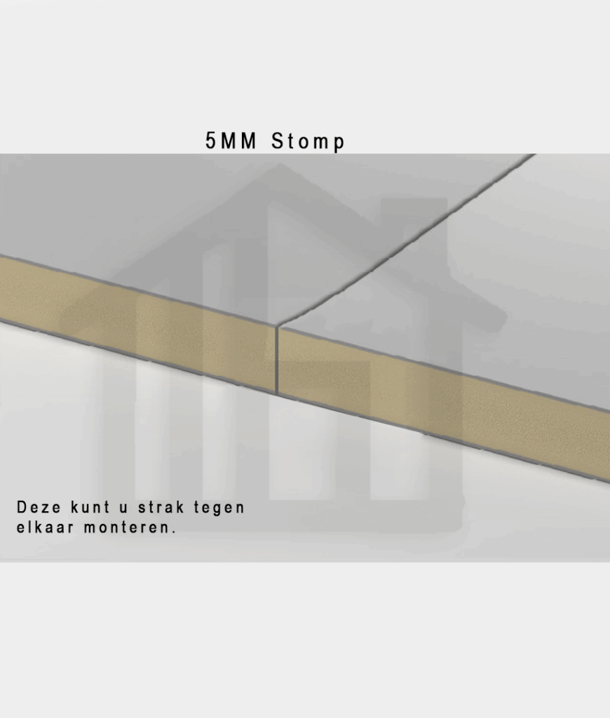 5mm (stomp): Platte randafwerking zonder uitsparing. Je plaatst deze panelen strak tegen elkaar (met of zonder profiel voor de afwerking). Voordeel: eenvoudig op maat te snijden met een fijn zaagblad, en bij deze dunne variant kun je zelfs een scherp mes gebruiken.